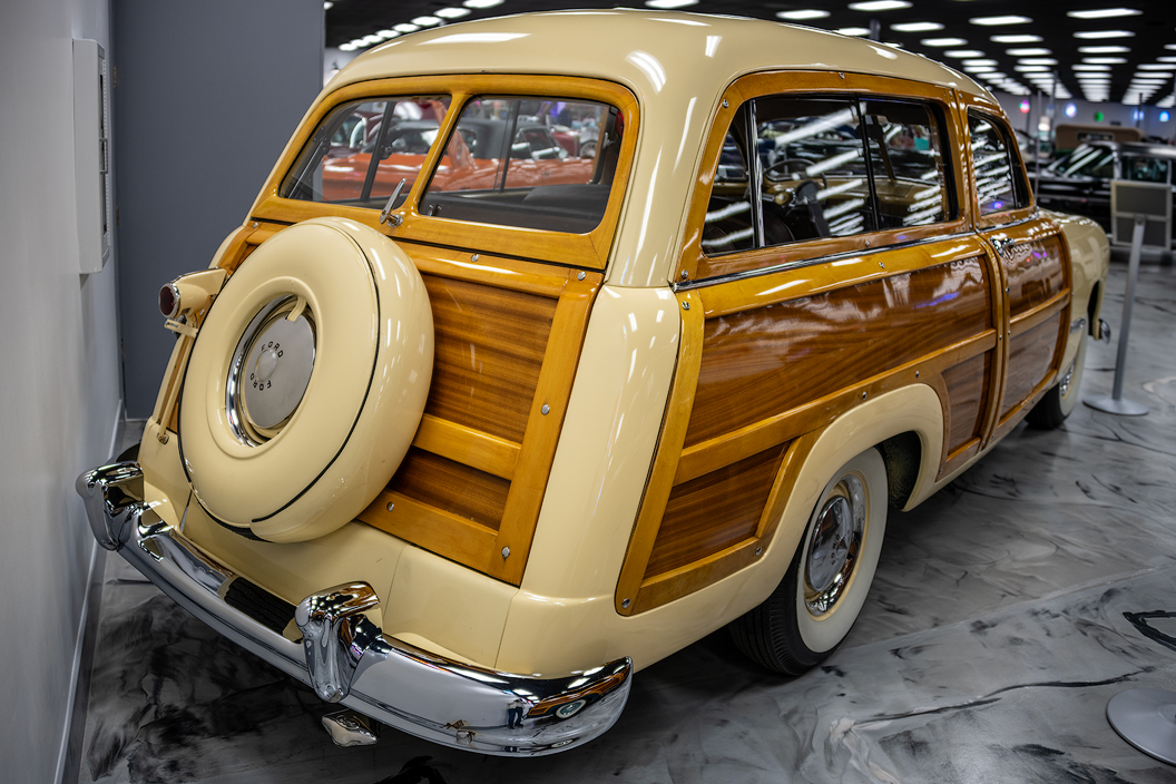 1949 Ford Woody Wagon This 1949 Ford Woody Wagon has everything that we love about classic cars in one vehicle. It has the iconic '49 Ford styling, with classic wood sides and the legendary bullet nose.The 1949 Ford models debuted at a gala at the Waldorf-Astoria Hotel in New York City in June 1948, with a carousel of the new Fords complemented by a revolving demonstration of the new chassis. The new integrated steel structure was advertised as a "lifeguard body" — and even the woody wagon was steel at heart. The convertible frame had an "X member" for structural rigidity.