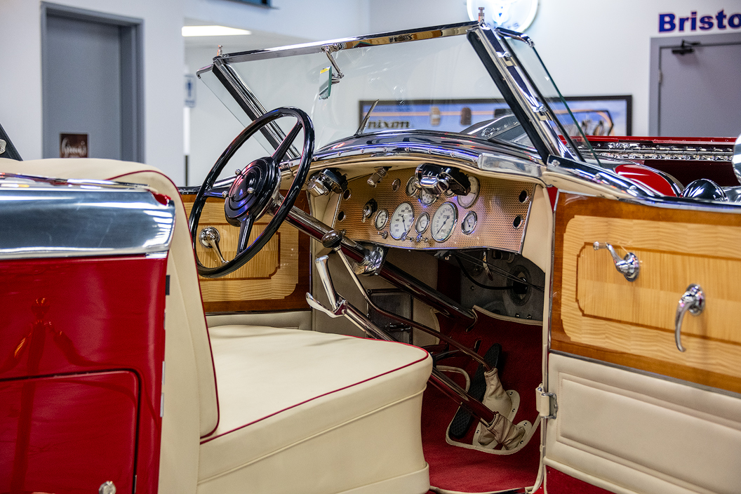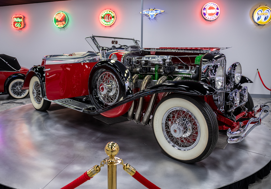 More recently, this car underwent a four-year restoration by Kevin and Jason Marsh of Utah. Utilizing a combination of original and reproduction components, top Duesenberg experts assisted in the recreation of this elegant car. This Duesenberg has been driven only 75 miles since restoration. I love this car. It was sitting on a turntable slowly rotating so I could see and savor every visible detail of this fabulous automobile. In fact, if they had offered me my choice of any of the cars in the museum, I would choose this Duesenberg. Who wouldn’t? Imagine riding around town as everyone would turn their head to look at the car and wish they could ride in it.