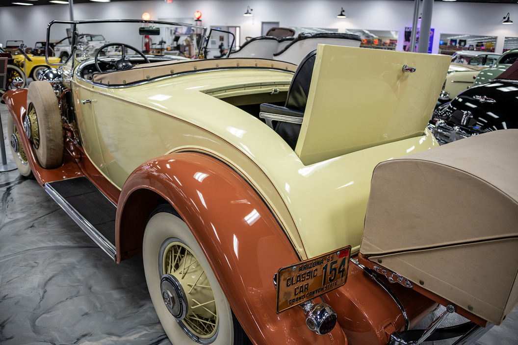 While the flagship V-12 and V-16 gathered all the fanfare, the V-8 powered models like this convertible coupe sold in steady numbers, helping Cadillac's bottom line during difficult economic times. Cadillac produced a total of 10,717 V-8 models in 1931. All Series 355 Cadillacs rode a new 134-inch wheelbase, six inches shorter than 1930 models giving the cars a sporty appearance.