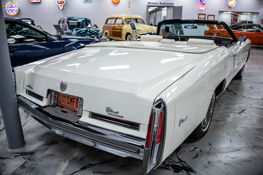 1976 Cadillac Eldorado Convertible The Cadillac Eldorado is a luxury car manufactured and marketed by Cadillac from 1952 to 2002 over twelve generations - this being a ninth-generation car (1971-1978). Throughout its production, the Eldorado was at or near the top of the Cadillac line. The original 1953 Eldorado convertible and the Eldorado Brougham models of 1957-1960 had distinct body shells and were the most expensive models that Cadillac offered in those years. 1976 was to be the final year for the Eldorado convertible and the car was heavily promoted by General Motors as "the last American convertible". Some 14,000 would be sold, many purchased as investments. The final 200 were designated as "Bicentennial Edition" commemorating America's 200th birthday. These cars were white with a dual-color red/blue pinstripe along the upper bodyside.