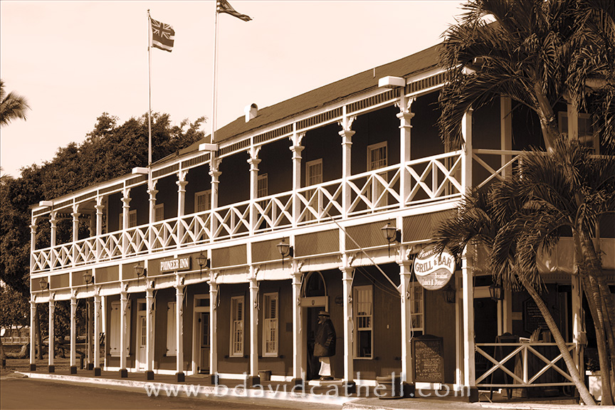 ![]() Pioneer Inn Sepia The Pioneer Inn is one of the oldest operating hotels in all of Hawai`i, over a century old and recently renovated. The architecture captures the feeling of old Hawai`i as would be approprate for Lahaina, the former capitol of the Hawaiian Kingdom. Photographer's note: This is more than just a sepia-toned version of a modern photograph. I have worked diligently to remove any traces of contemporary civilization — by eliminating cars, power lines, newer buildings, etc. The goal was to craft a photo that would be very similar to one taken more than 100 years ago. I love the look and I hope you do too. |