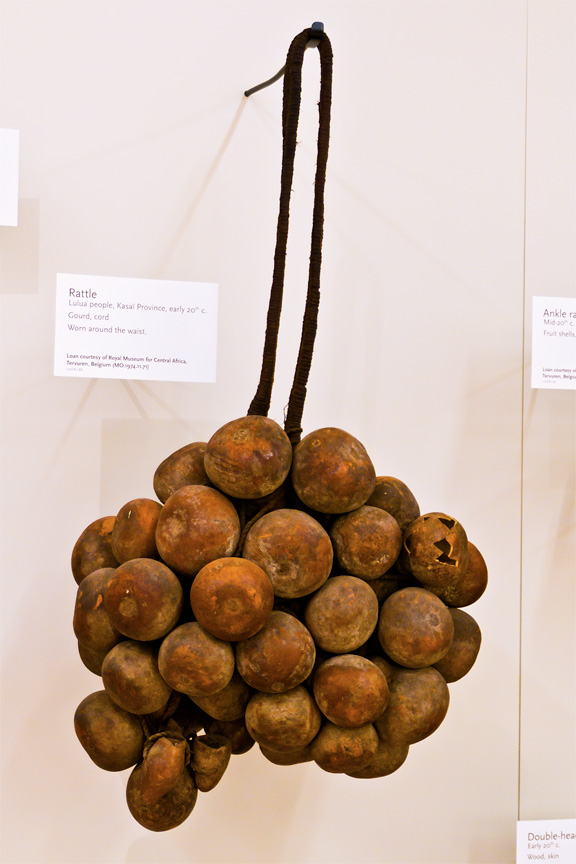 ![]() Pictured to the right is a rattle from the Lulua people. It was constructed of gourds and cord. It was worn around the waist and I assume provided its music when the wearer danced. I would have loved to see and hear it demonstrated. |