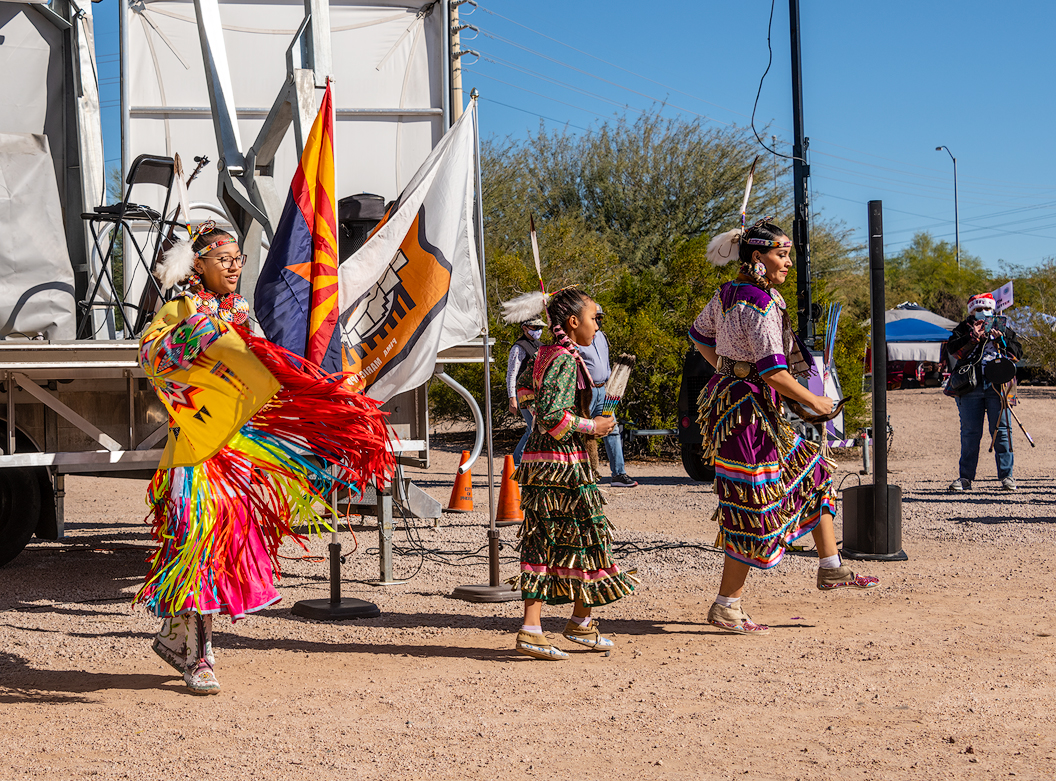 Last, but certainly not least, the family all stands together to accept the applause for their performances. It was wonderful. And time to head to the fry bread stand for a culinary treat.