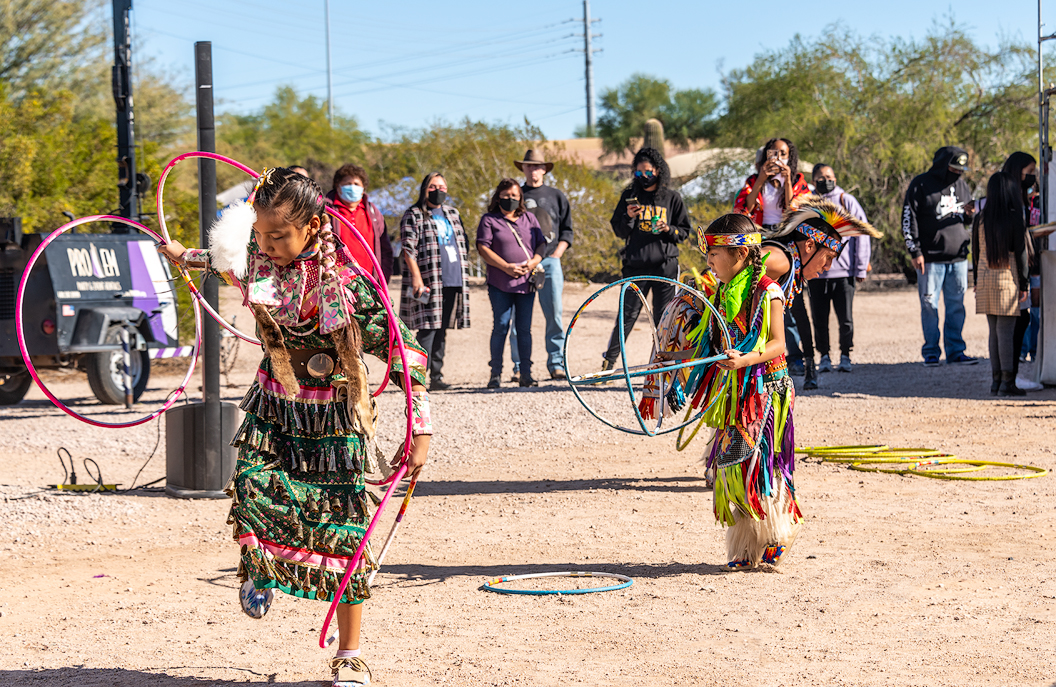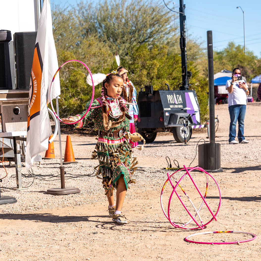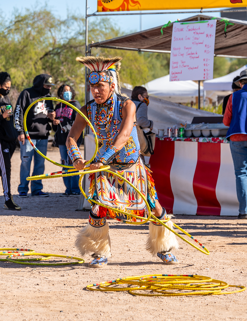 Here Manaya is performing a hoop dance where dancers integrate the hoops into the dance forming geometric figures and even animal shapes.