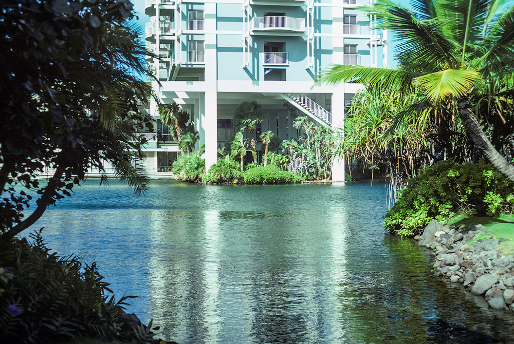 The hotel property impressed me greatly because of the water-scape — water almost touching the buildings. People staying in the ground-level units could step through their sliding glass doors and would be ready to dip their feet into the water.
