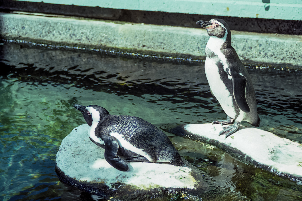 In addition to dolphins, they had penguins waddling as penguins do.
