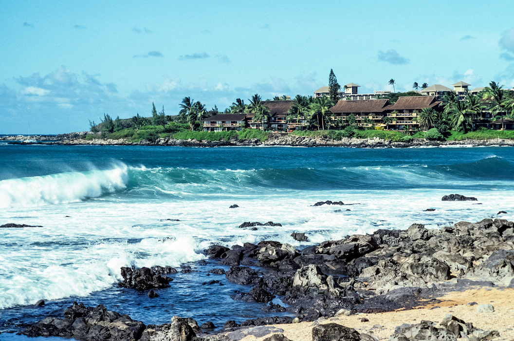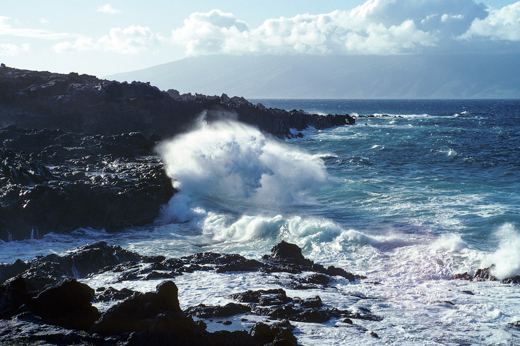 This particular morning, another sound caught my attention, waves crashing on the rocks along the shoreline. I grabbed my camera and began my morning walk. It was quite a surprise to see such large waves filling Napili Bay — typically, it is quite calm in the morning. Mornings are great for snorkeling and letting the kids swim. Afternoons may see such waves and they are fun for body or boogie board surfing. You will feel the power of the ocean lifting you up and then setting you back down on the sandy bottom.