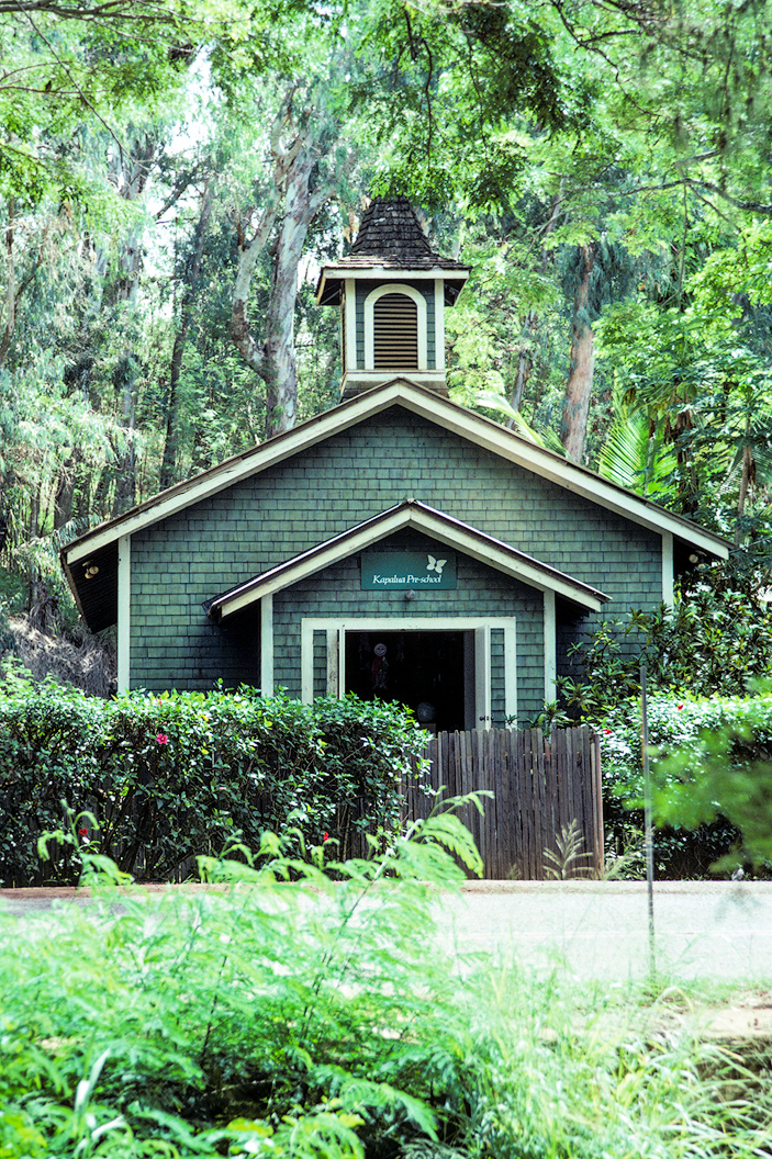 Just mauka (toward the mountains) of Fleming Beach stands a building with a bit of history behind it. It was originally built on the plantation as a meeting hall. Around 1936, it was moved to this current spot and served as a church. In 1980, it was repurposed to its current role as a preschool.