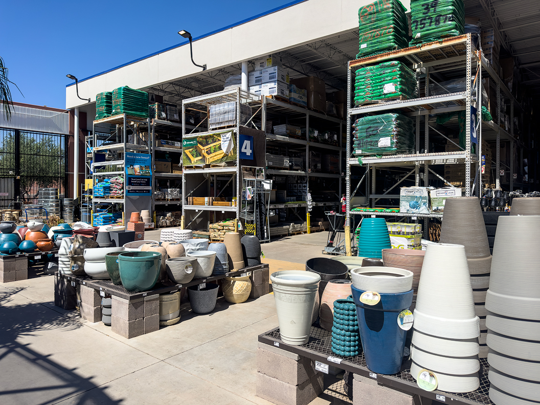 In the back of the Garden Center is an area containing pavers, bricks, and seasonal planting supplies (now it is home to seed and fertilizer for overseeding — when homeowners follow the practices of the golf courses when they change from summer grass to winter grass).