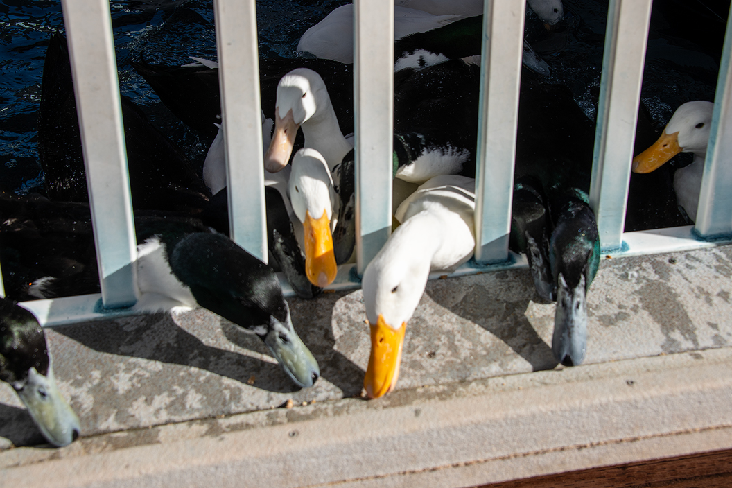 The next hungry animals were ducks, specifically Pekin Ducks. I thought the identification was a joke but it turns out that Pekin or White Pekin is an American breed of domestic duck, raised primarily for meat. It derives from birds brought to the United States from China in the nineteenth century and they are now bred in many parts of the world. Thank you, Wikipedia.