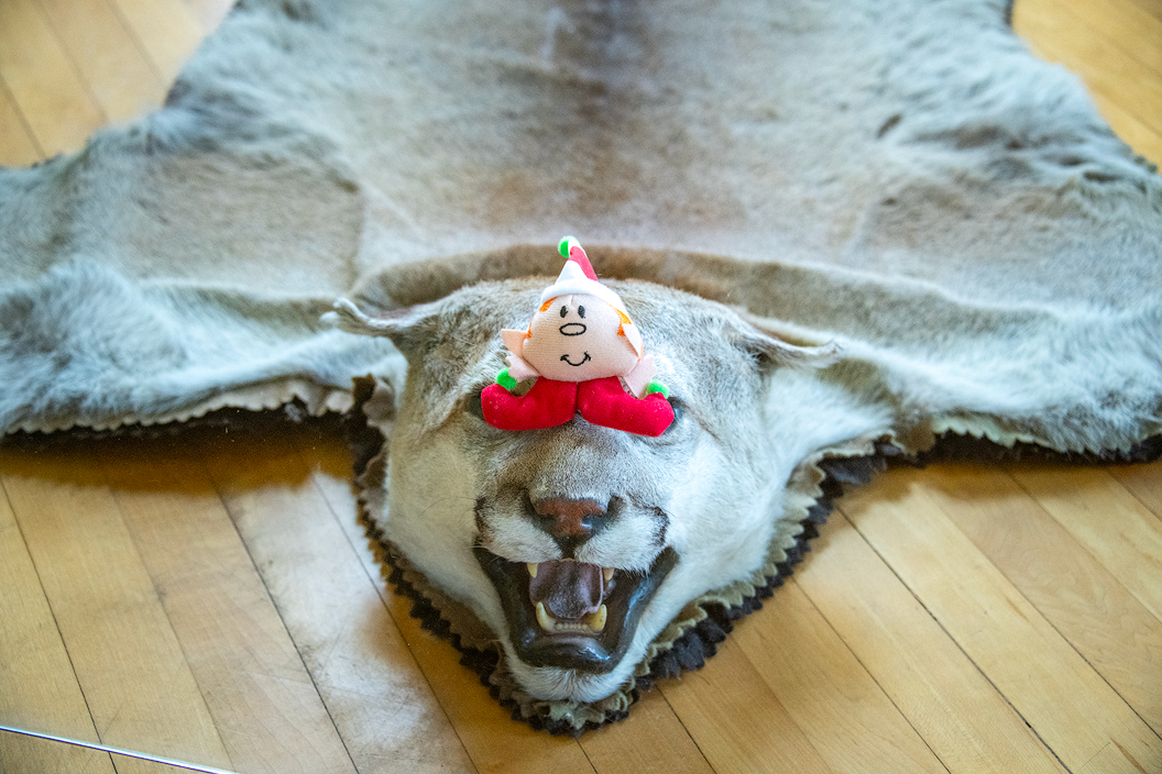 On the floor of the same bedroom was a bobcat skin with an elf sitting on its nose. I would have thought a bobcat skin might frighten a child who occupied this room. Maybe not. I'd love to know the rest of the story.