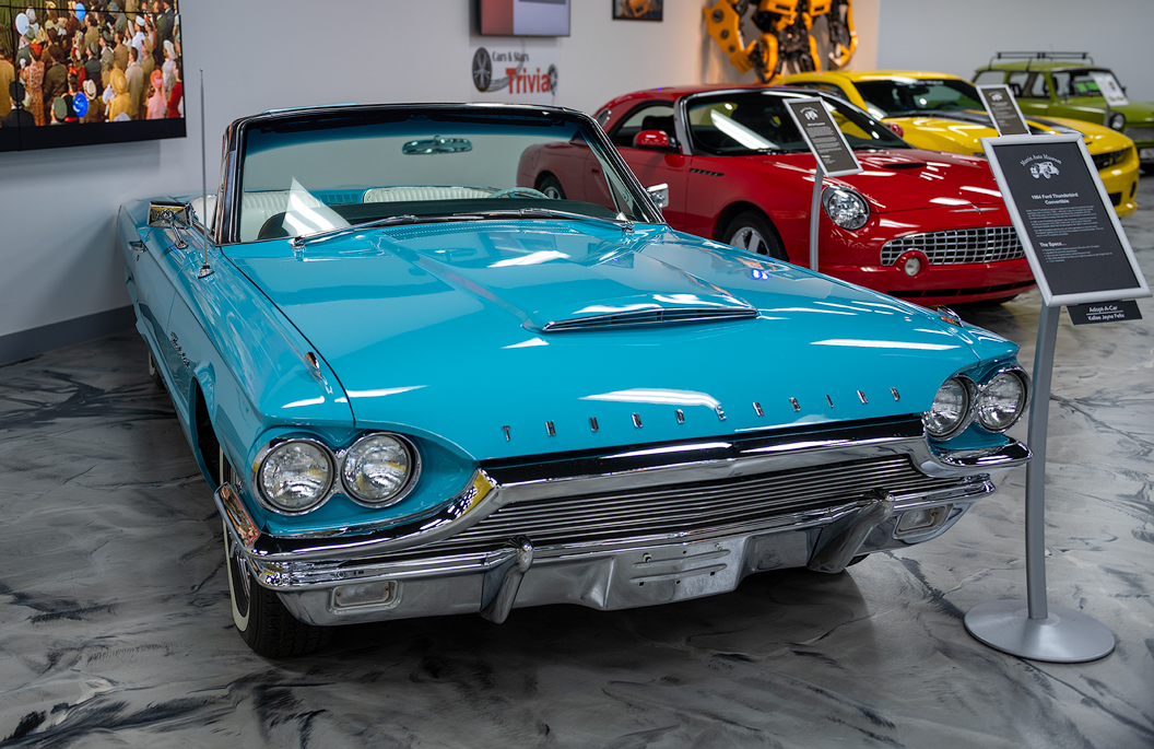 In 1964, a new Thunderbird generation was introduced. It has front-end styling that was an evolution of the 1963 "bullet nose" and moved to horizontal rectangular taillights rather than the jet-inspired rear lights in previous models. The 1964 Thunderbird was the only car of this generation to have the word "Thunderbird" spelled out on the front hood instead of a chrome emblem. This is a one-of-a-kind Thunderbird convertible.