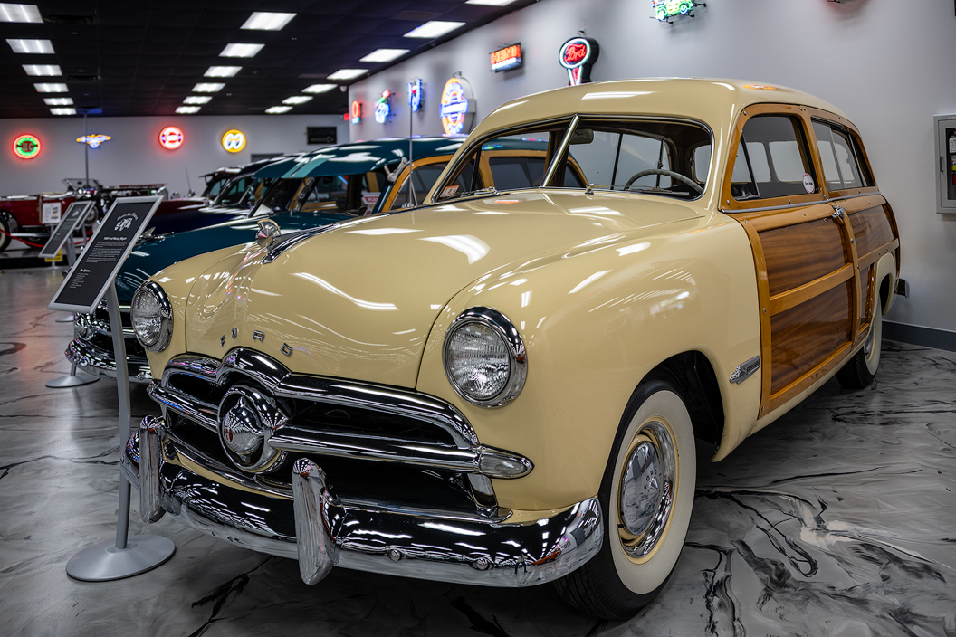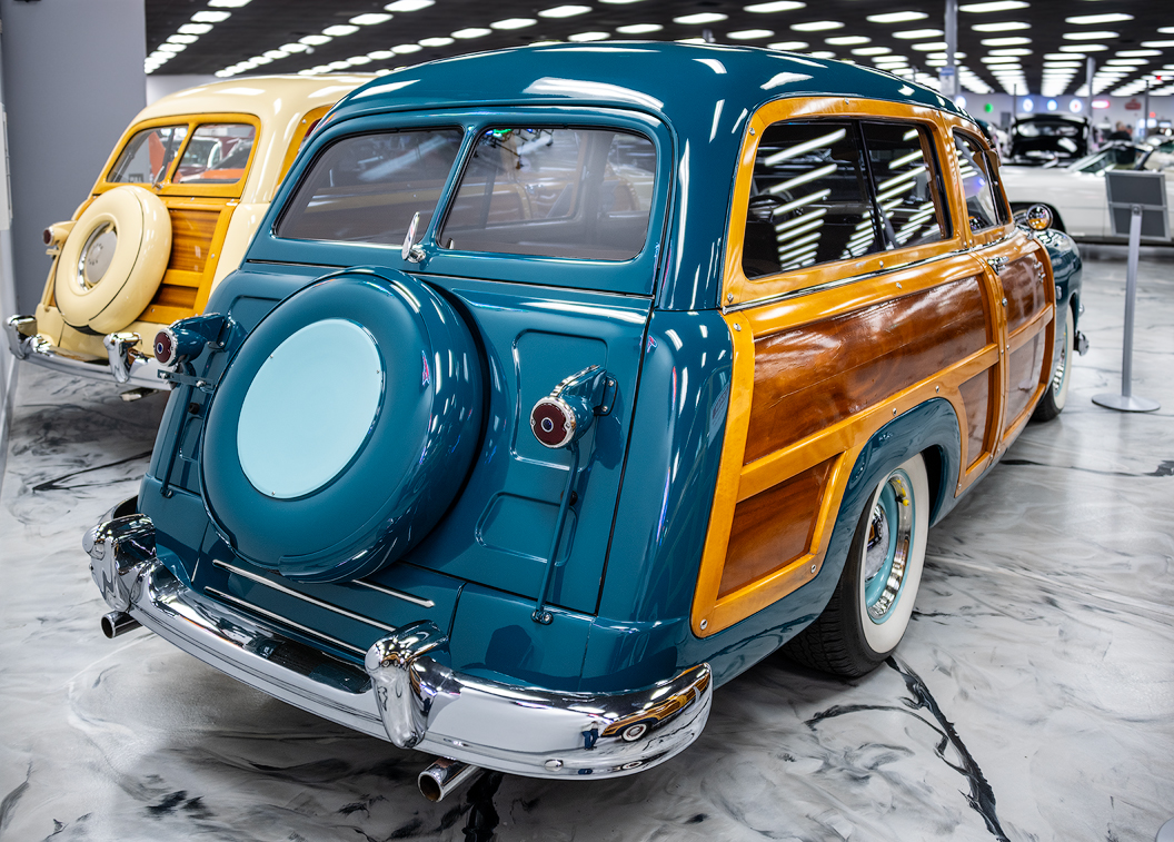 1949 Ford Woody Wagon This 1949 Ford Woody Wagon has everything that we love about classic cars in one vehicle. It has the iconic '49 Ford styling, with classic wood sides and the legendary bullet nose.The 1949 Ford models debuted at a gala at the Waldorf-Astoria Hotel in New York City in June 1948, with a carousel of the new Fords complemented by a revolving demonstration of the new chassis. The new integrated steel structure was advertised as a "lifeguard body" — and even the woody wagon was steel at heart. The convertible frame had an "X member" for structural rigidity.