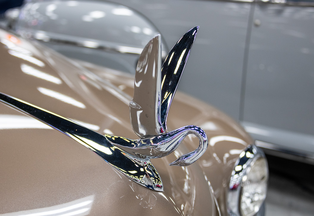 The hood ornament was nautical in nature — honoring Plymouth, the port in England from which the Pilgrims departed and the site of the landing of the Mayflower in Massachusetts.