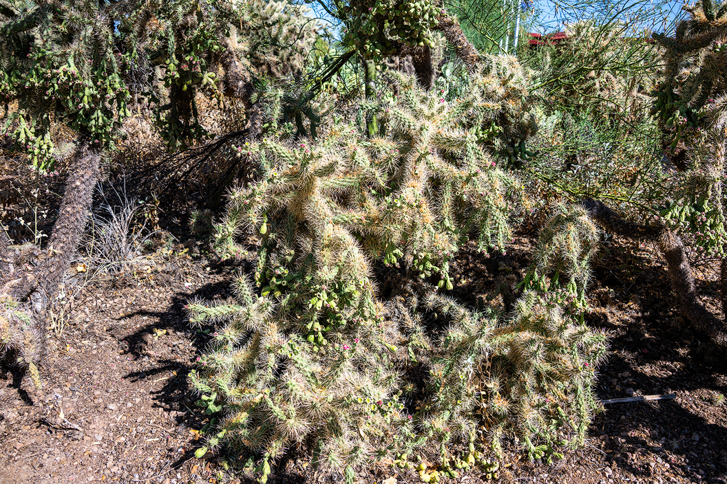 This appears to be a variety of cholla cactus. It does not need a sign to tell you to "KEEP OUT!!!"