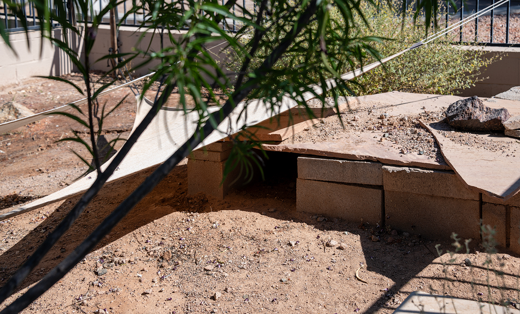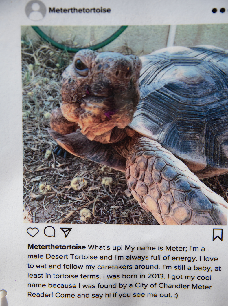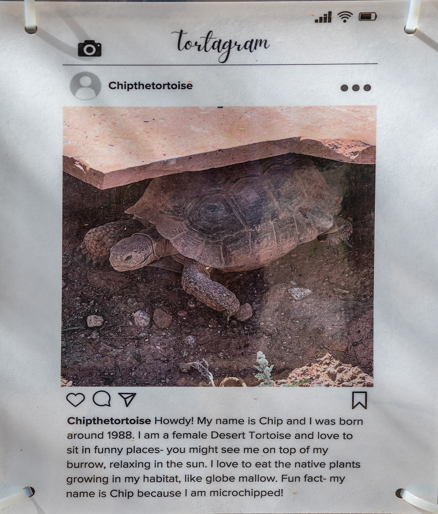Nearby were two pens, each holding a Desert Tortoise. Neither animal was out of its man-made burrow so I could only share a photo of a photo.