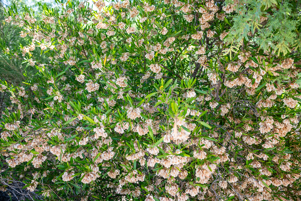 I needed help to identify this huge shrub but it appears to be a Broadleaf Hopbush, a species of flowering plant in the Dodonaea (hopbush) genus that has a cosmopolitan distribution in tropical, subtropical, and warm temperate regions of Africa, the Americas, southern Asia and Australasia. It is a bit unusual to my eye but one source suggested it as an alternative to Oleander in the Arizona garden both for aesthetic and durability reasons.