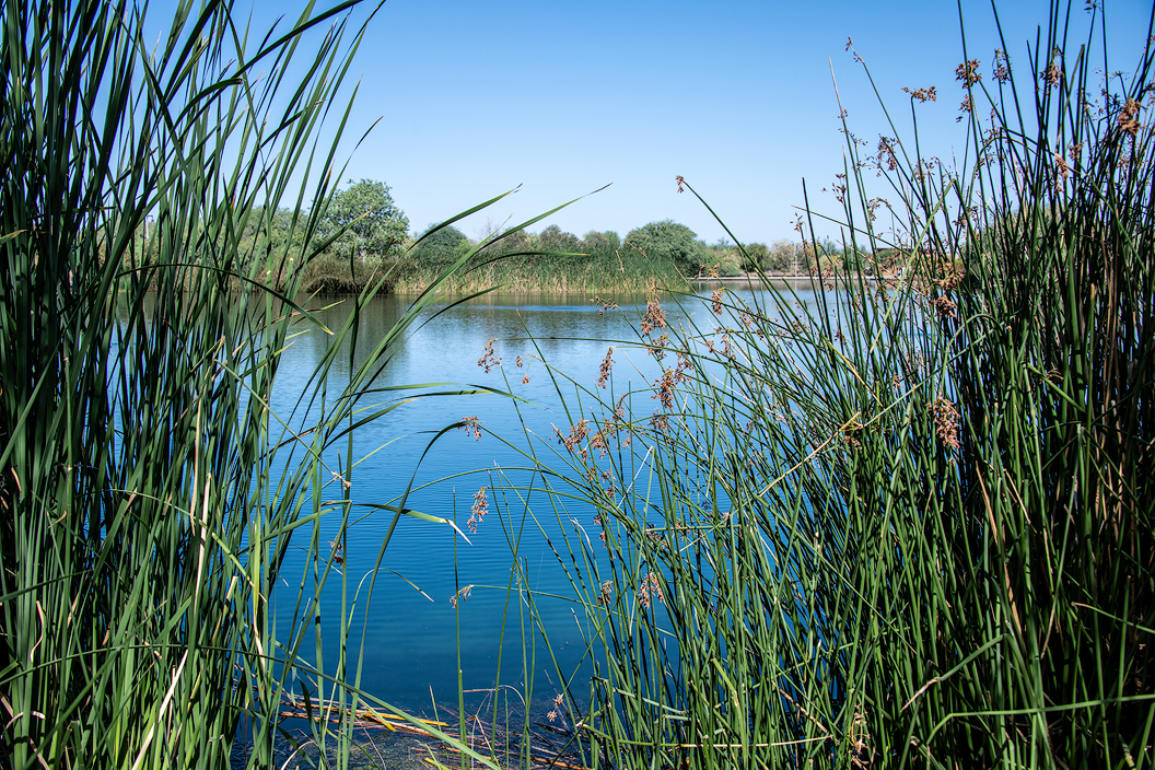 Continuing my stroll through Veterans Oasis Park, I caught a glimpse through the bushes of two birds along the lake's edge.