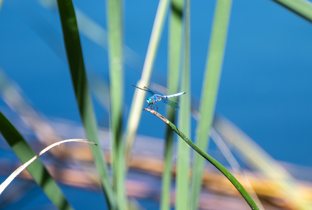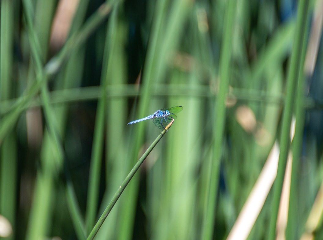 Dragonflies were flying all around the edge of the lake. They would land on a stalk of marsh grass but wouldn't stay long. I was lucky to catch a shot of this one.