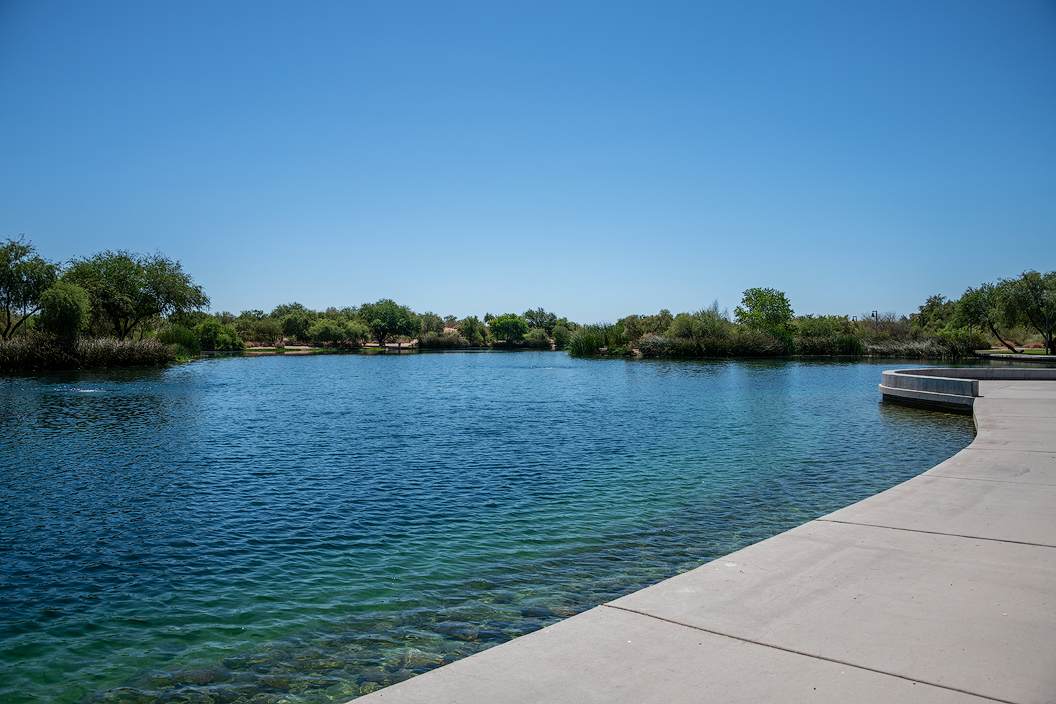 It was a hot day. I was drinking plenty of water. Fortunately, I encountered a very nice restroom halfway around the lake. Thank you, park planners.