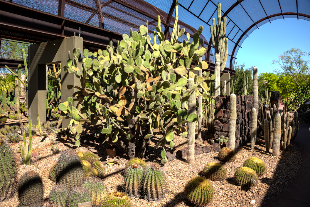 Next up is a covered pavilion full of a variety of cactuses. I love it, not only for the cactus but for the relief from the sun that it provides, which is especially important on a summer visit to the Desert Botanical Garden.