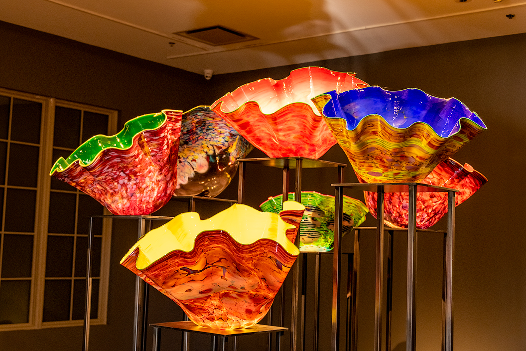This is something new — at least I never noticed it before and the docents were pointing it out to everyone. Chihuly glasswork indoors. I knew that Dale Chihuly crafted glass pieces for sale and display in homes and businesses but this is the first time I have seen it in person. I love the way they have directed the light onto the pieces makes each look like it is self-illuminated. ![]() |