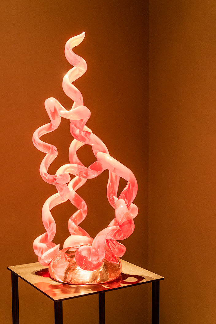 We have seen similar glass shapes previously but the first time in these colors. It is appropriately named Opal & Amber Tower, 2018. I love the plants at the base and in the background as well as the hill in the far background. They did a great job of picking this location. ![]() |