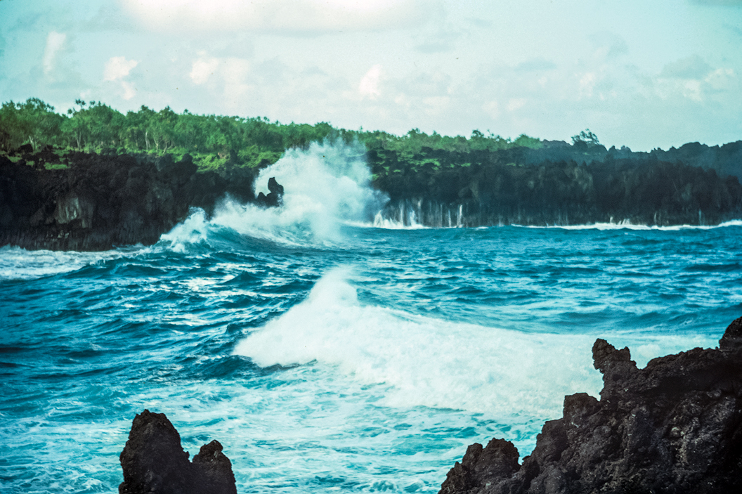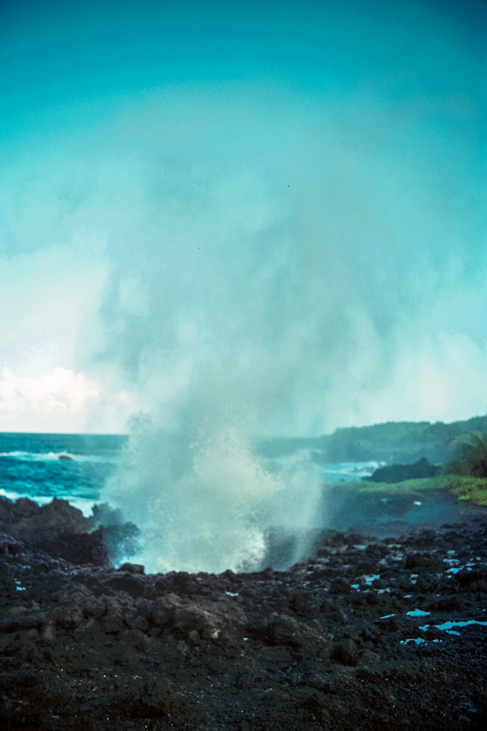 One of my favorite views — the waves which have been traveling hundreds of miles over open ocean, gaining height, and volume before crashing into the volcanic rock shoreline — with spray flying dozens of feet into the air. As I have mentioned before, you feel the impact, not just hear it. ![]() |