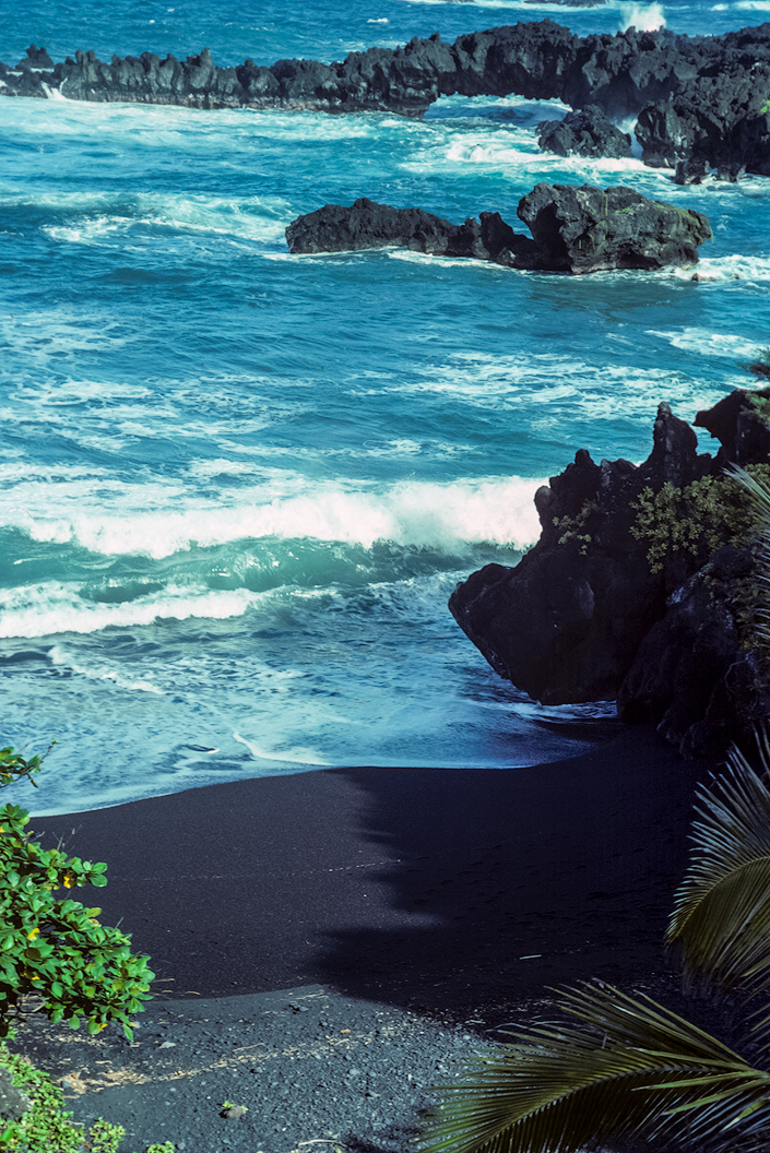 One of my favorite places in the Hana area is Waiʻānapanapa State Park. After you find a parking place there, gaze out over the ocean — not only is there the beautiful Pacific Ocean but also lava rock outcroppings that whip the ocean waves into a frenzy. BTW, I noticed on the park website (click here) that reservations are now required for camping, lodging, and even for parking. Register before you go. ![]() |