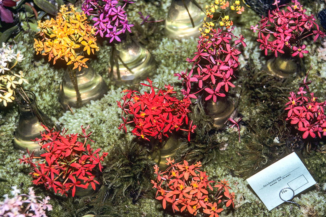 This exhibit was stunning — I have never seen an orchid plant with so many blossoms. In subsequent years, I looked for it or its successor but never saw one anywhere that compared. A Cattleya, perhaps. ![]() |