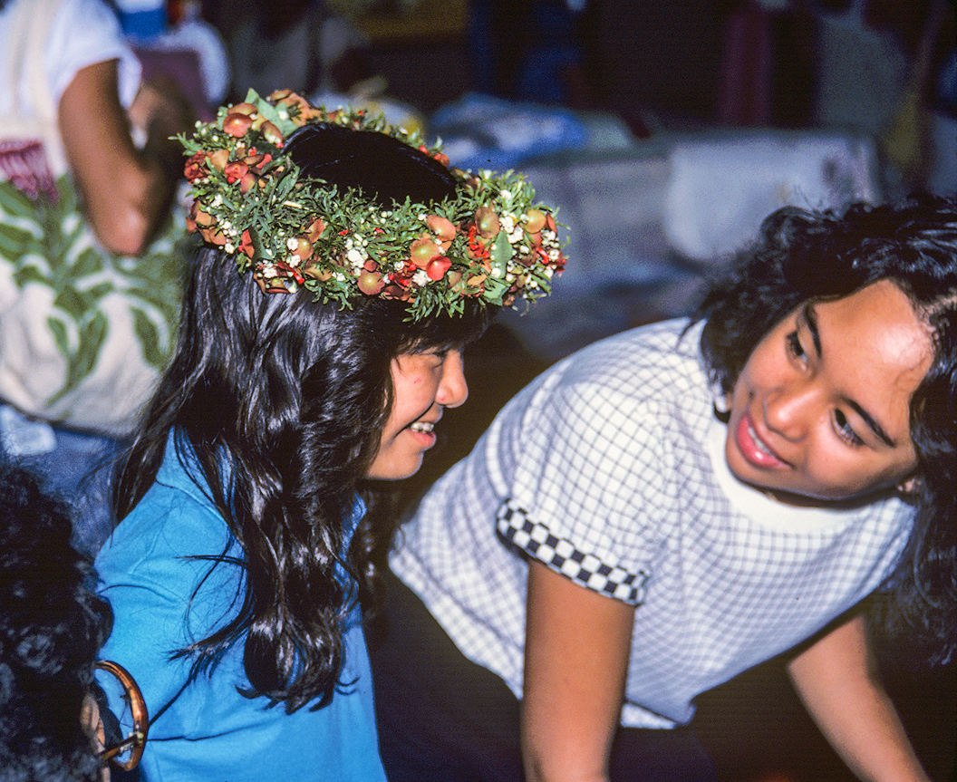 And here we have a display of head leis being made by ladies seated around the table. ![]() |