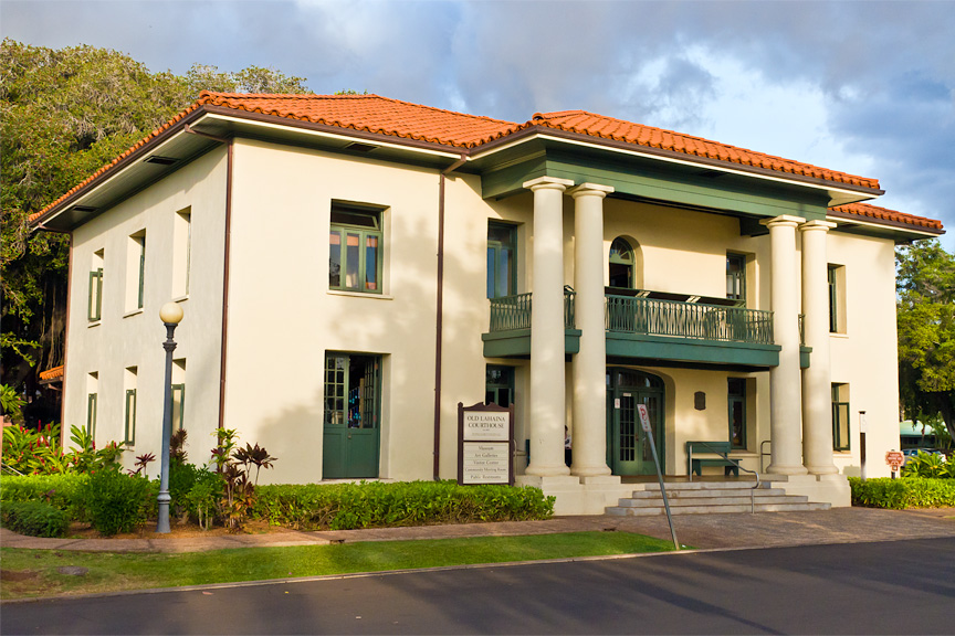 Here we see the Old Lahaina Courthouse which was opened in 1860, originally serving as a center for government offices and court functions during the Hawaiian monarchy as well as a customs house for whaling and trade ships. Decades after the Kingdom of Hawaii became the Territory of Hawaii, the courthouse was rebuilt in 1925 in its current Greek Revival architectural style with a gabled roof and second-floor balcony. A major restoration was started in 1998, and before the wildfire, the Old Lahaina Courthouse was home to the Lahaina Visitors Center, Lahaina Arts Society galleries, Lahaina Town Action Committee offices, and the Lahaina Heritage Museum. Now only the outer shell remains. ![]() |