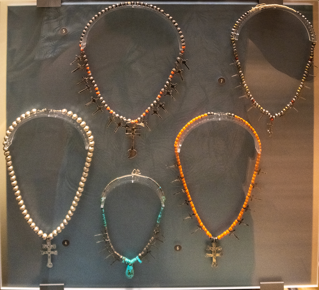 Hopi Jewelry includes beautiful pendants made from stone and silver. The heart at the bottom of the cross pendant (left-most) is found on the bottom of