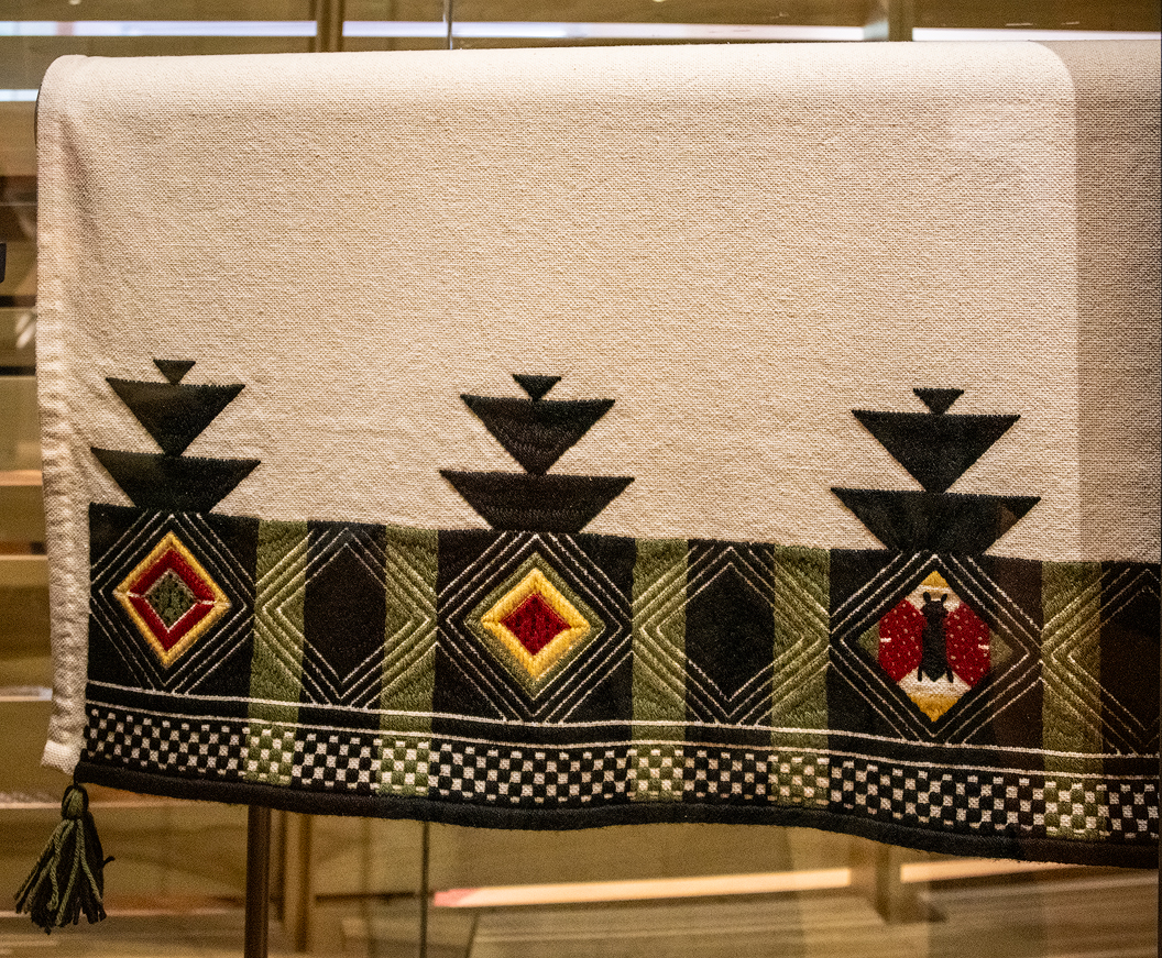 Pueblo weaving and embroidery to many students. The manta features a butterfly — a symbol of