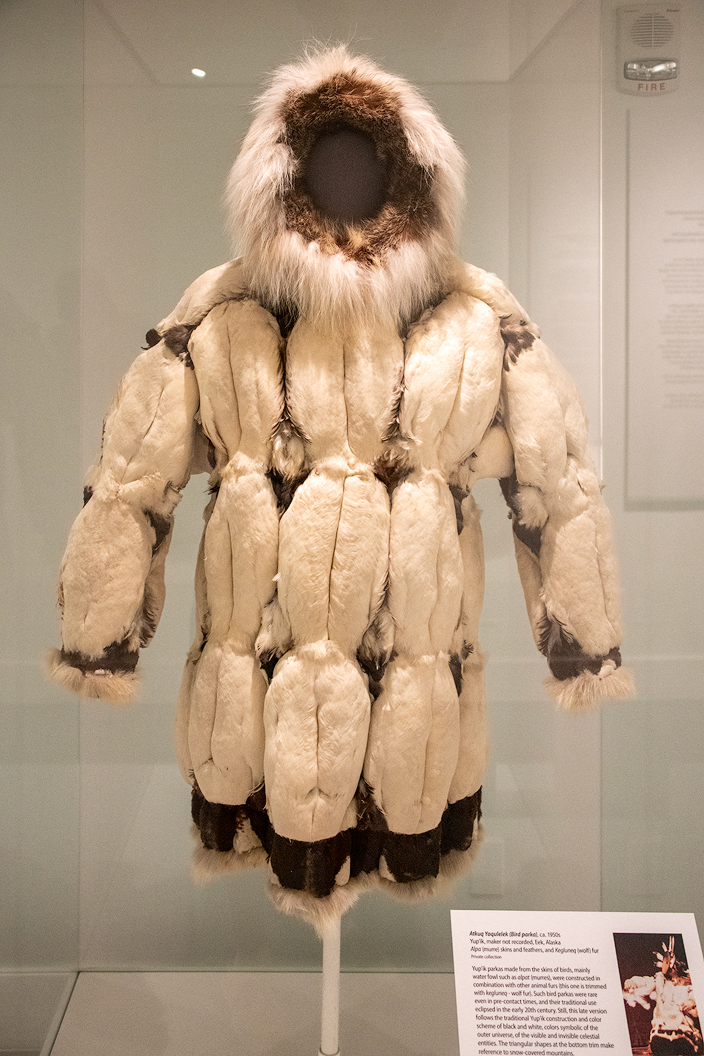 Yup'ik parkas made from the skins of birds, mainly