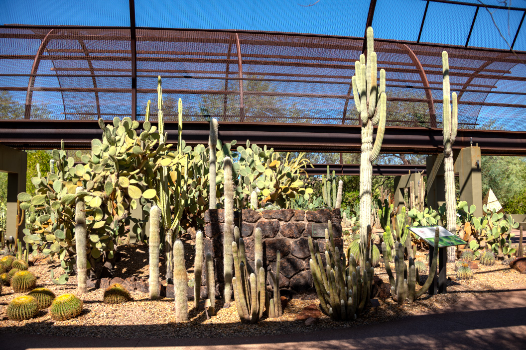 Next up is a covered pavilion full of a variety of cactuses. I love it, not only for the cactus but for the relief from the sun that it provides, which is especially important on a summer visit to the Desert Botanical Garden.