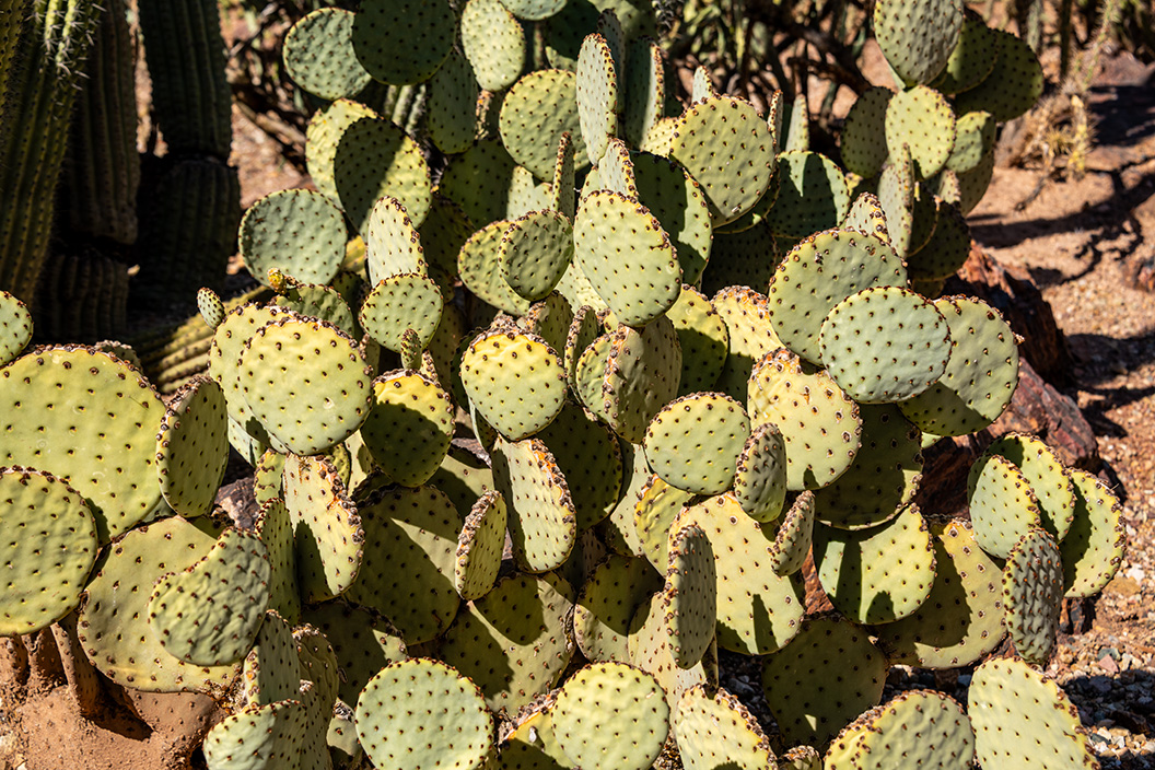 Next, we see a stand of Prickly Pear Cactus which is probably the most recognized cactus after Saguaro. According to Wikipedia, "Prickly pear species are found in abundance in Mexico, especially in the central and western regions, and in the Caribbean islands (West Indies). In the United States, prickly pears are native to many areas of the arid, semi-arid, and drought-prone Western and South Central United States, including the lower elevations of the Rocky Mountains and southern Great Plains".