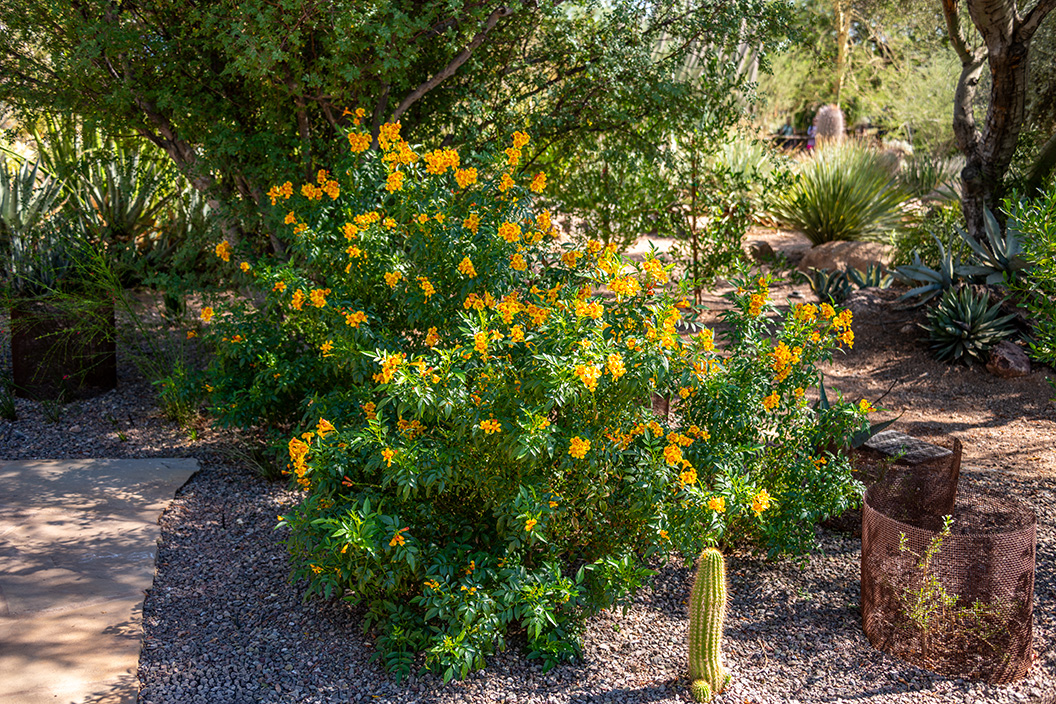 Wow, this looks like a Yellow Bell bush. We sell a lot of these in Lowe's Garden because, besides being pretty, they can tolerate the HOT Arizona Summer Sun. Even the Highway Department likes them — and plants them along our highways since they require so little maintenance. Automatic watering is about the only care they get.